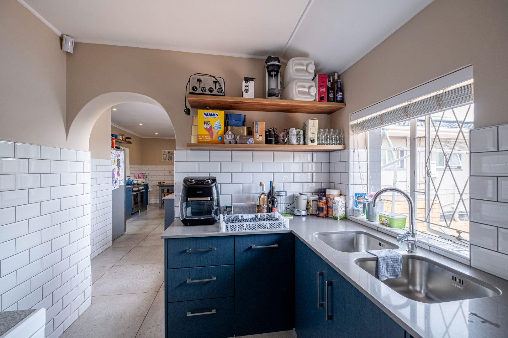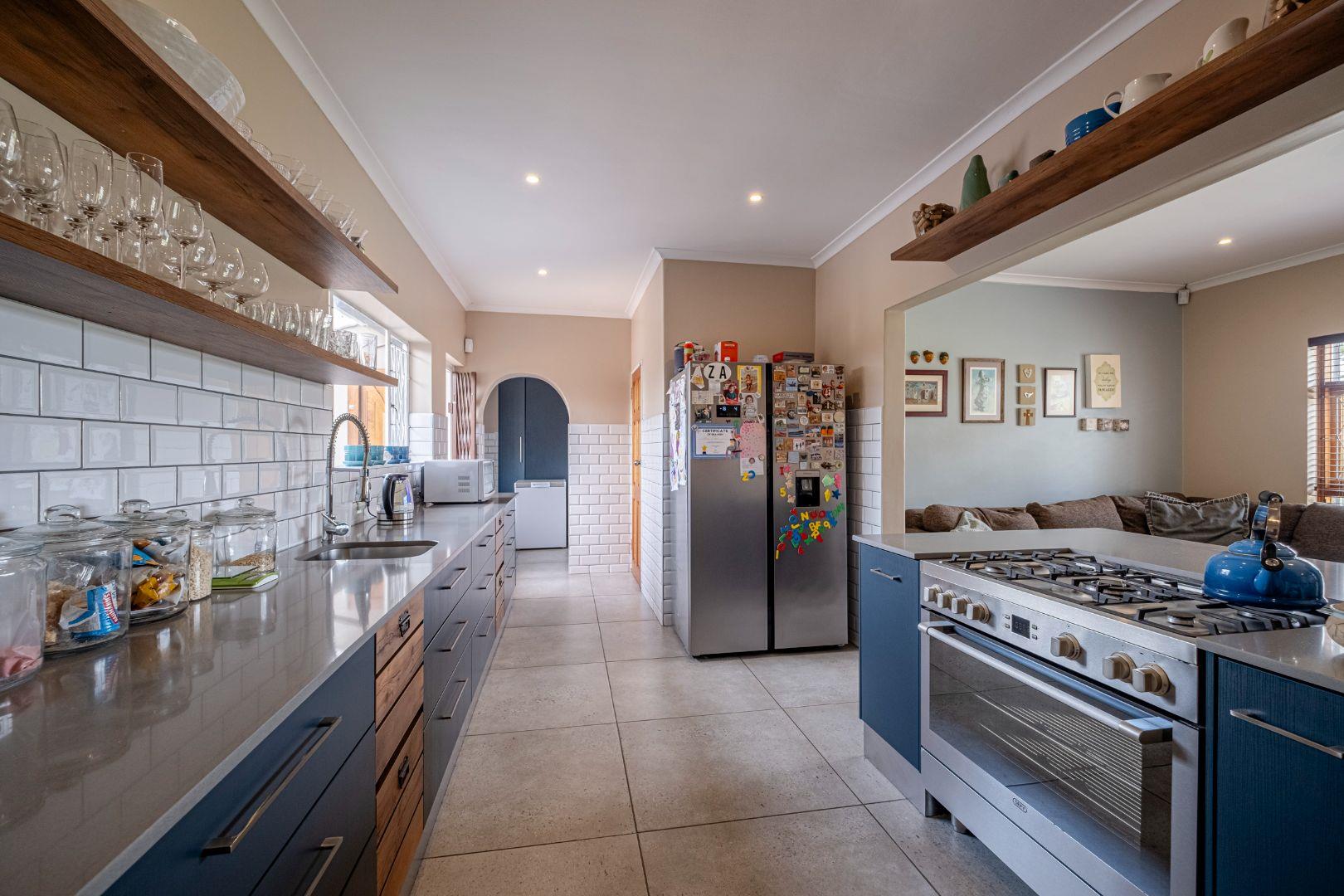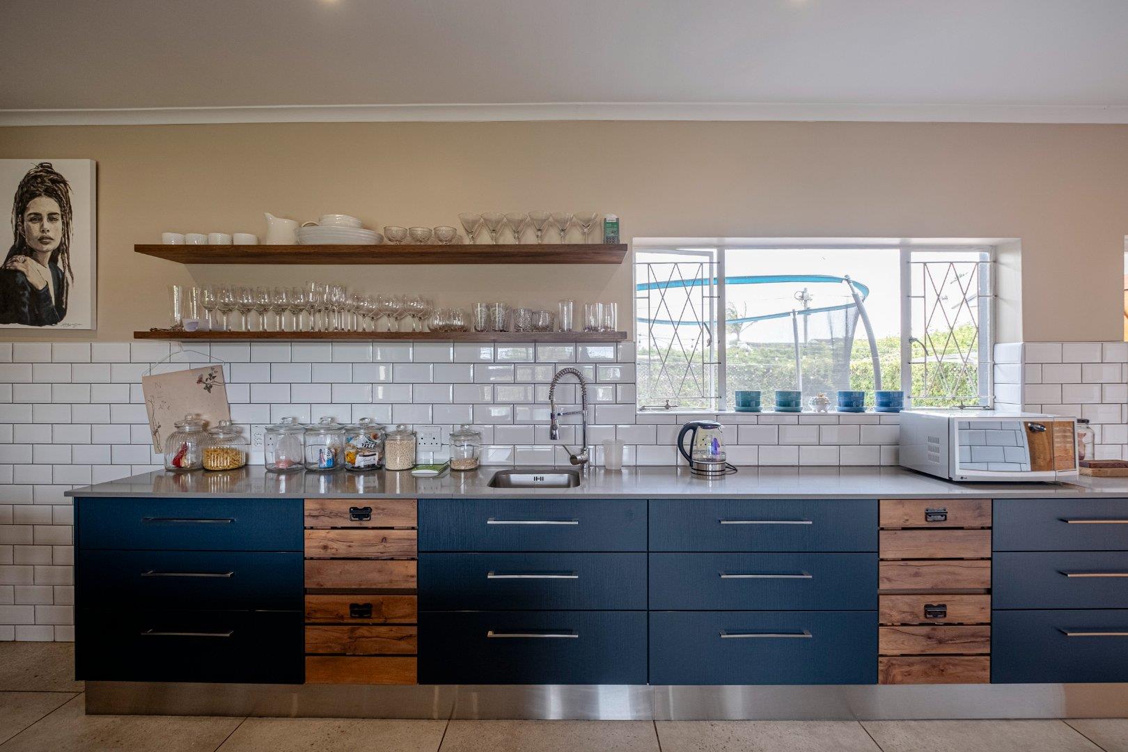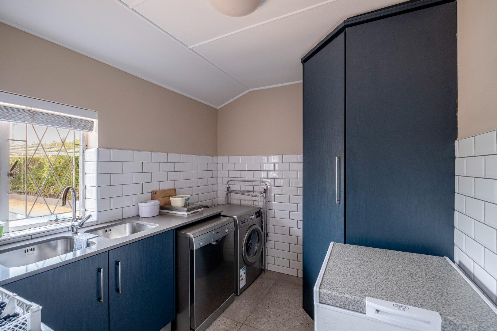 Designer kitchen with ample cupboard space, leads into the scullery/laundry area.