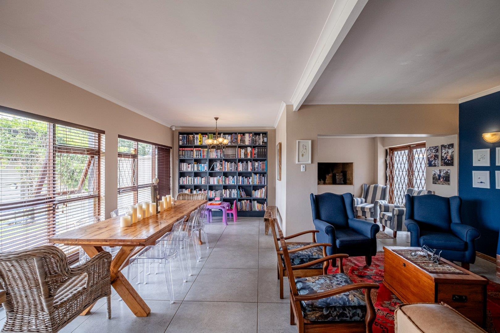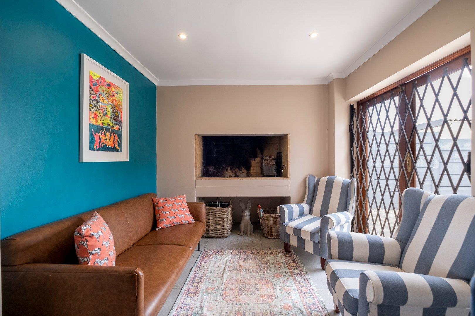 Spacious Open Plan Living: 3 comfortably sized living areas, one with fireplace and the other with indoor braai area, leading onto the fully enclosed back yard.