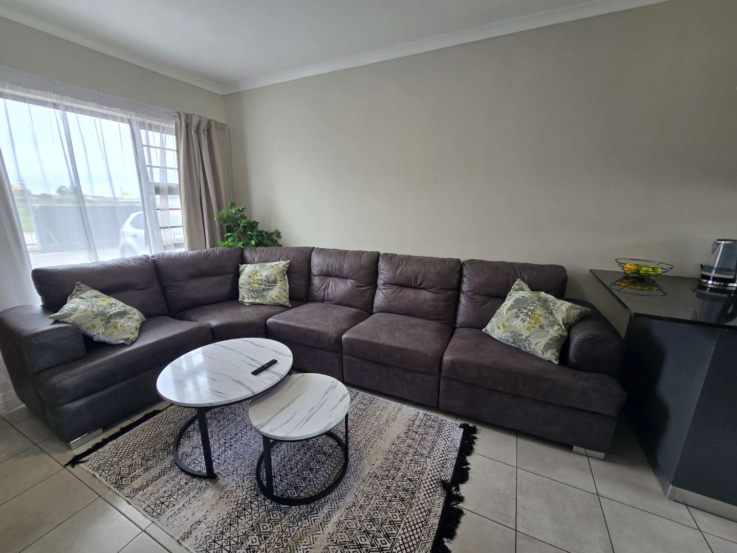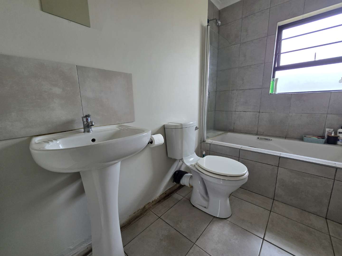 This neat and well-maintained 47m2 townhouse is tiled throughout and offers two bedrooms with built-in cupboards. The bathroom consists of a bath with a shower fitted over the bath.