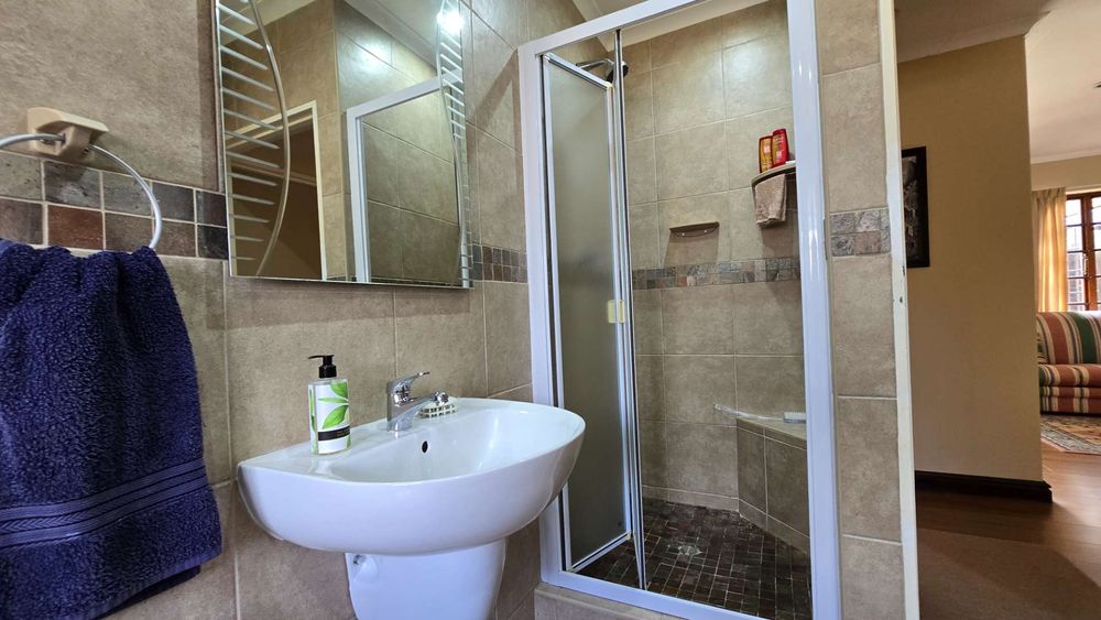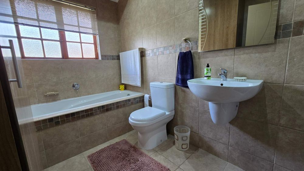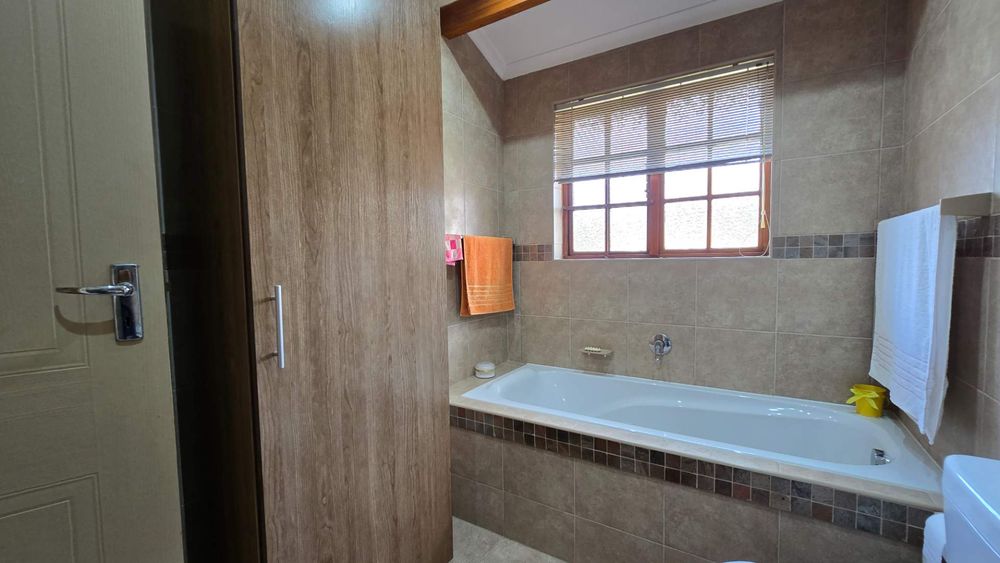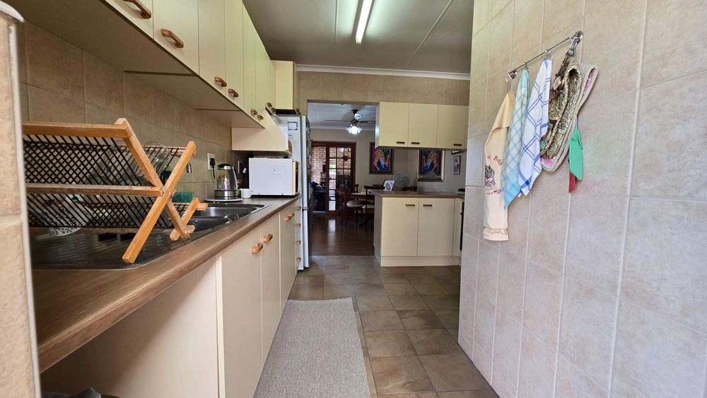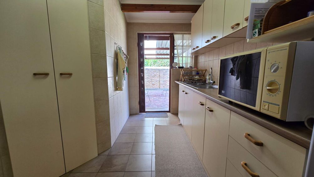 The garden is of a decent size for those wanting a garden without a lot of maintenance. A well-maintained outdoor space, perfect for children, pets, or quiet reflection The backyard has an undercover braai area with easy access to the kitchen. A water harvesting system is in place to ensure that there is always water to the property.