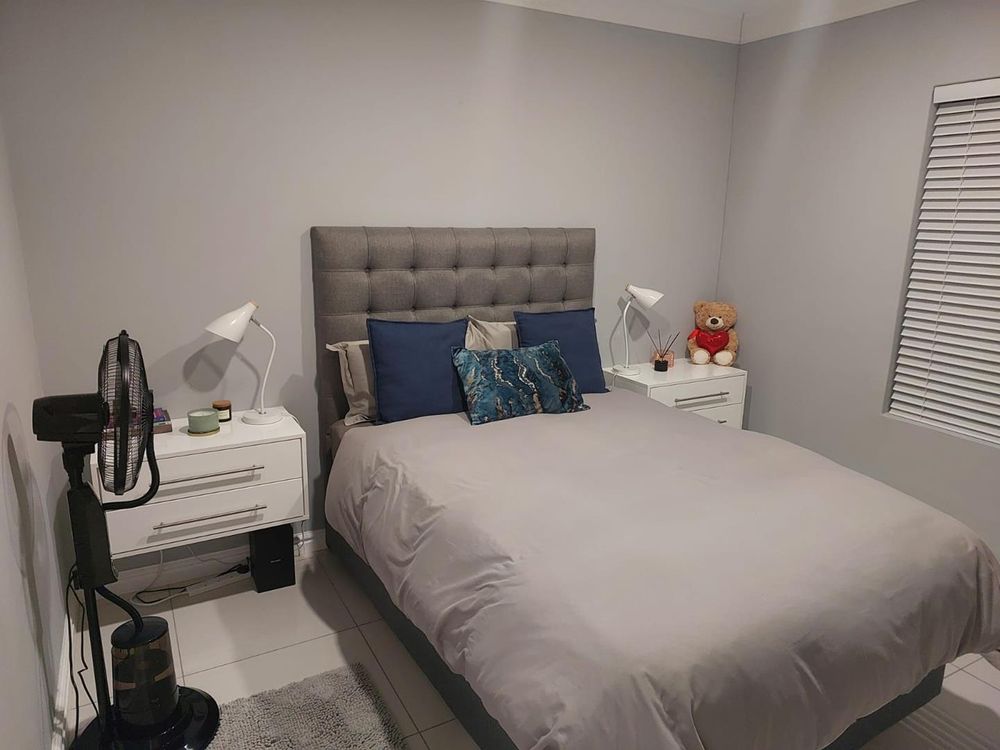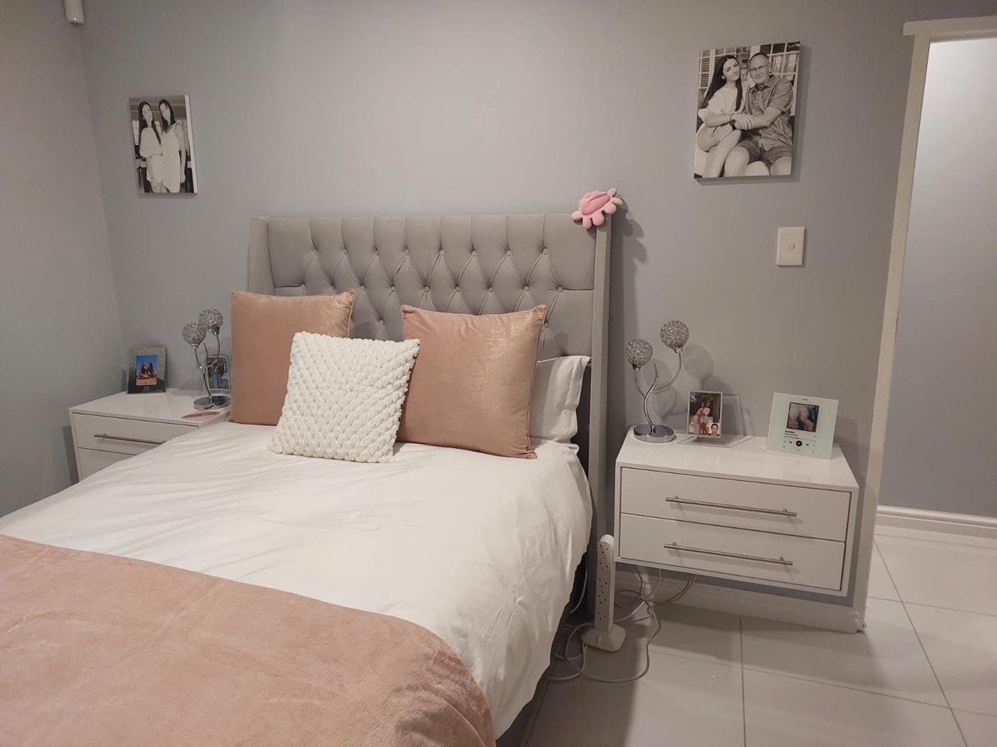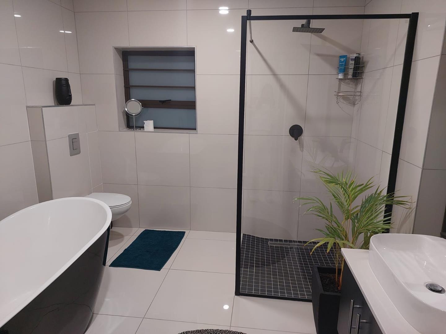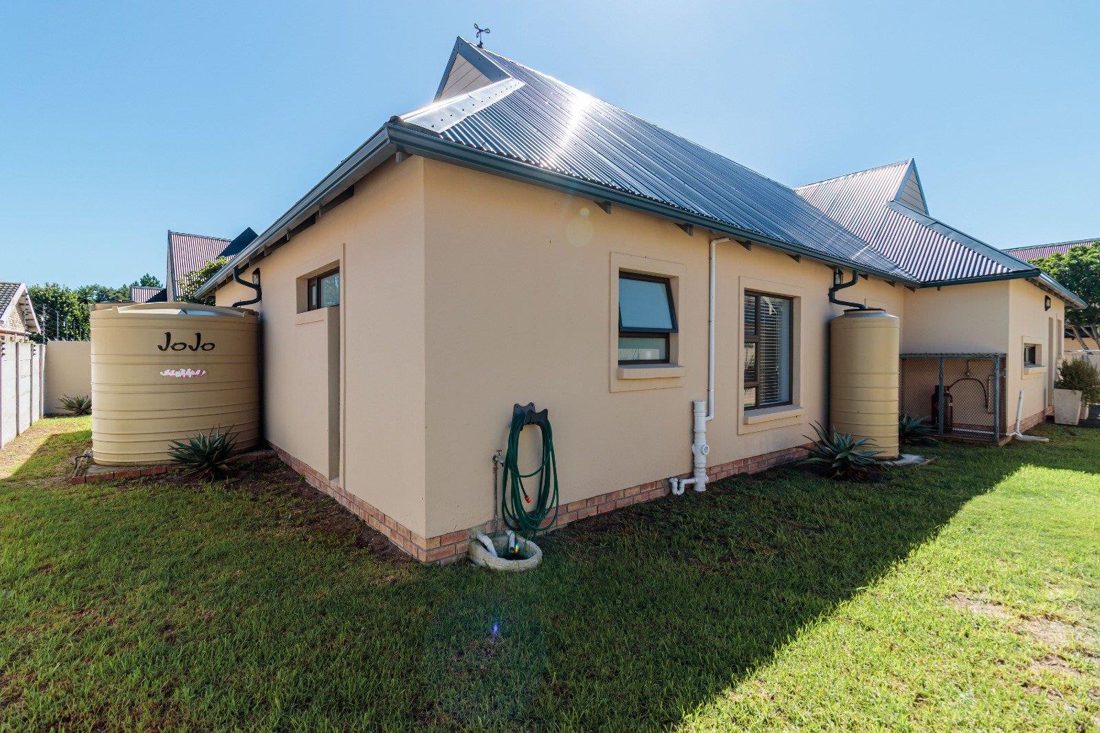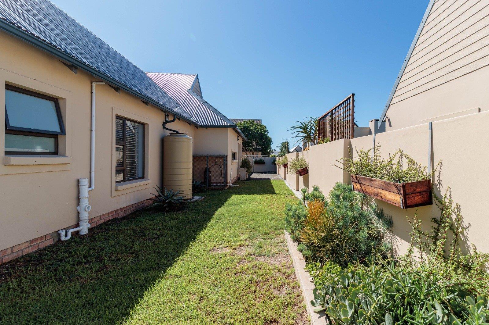 Stacking doors open onto a decked outdoor lounge area and garden, creating an effortless indoor-outdoor flow. The entertainment area is complemented by a built-in braai, perfect for hosting.