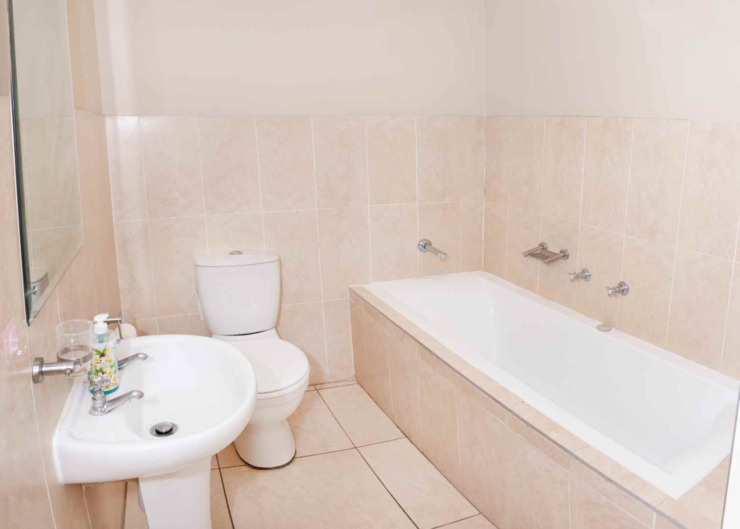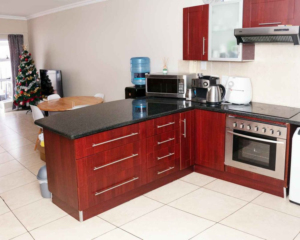 Situated near schools, medical facilities, and shops, this clean and neat 2-bedroom, 2-bathroom apartment offers comfortable living in a secure setting. The open-plan kitchen and lounge face a generously sized patio that looks onto a courtyard. The patio is accessible from both the lounge and bedroom. The apartment receives ample natural light. The kitchen is spacious and has granite countertops. Two bedrooms with built-in cupboards are complemented by two bathrooms.