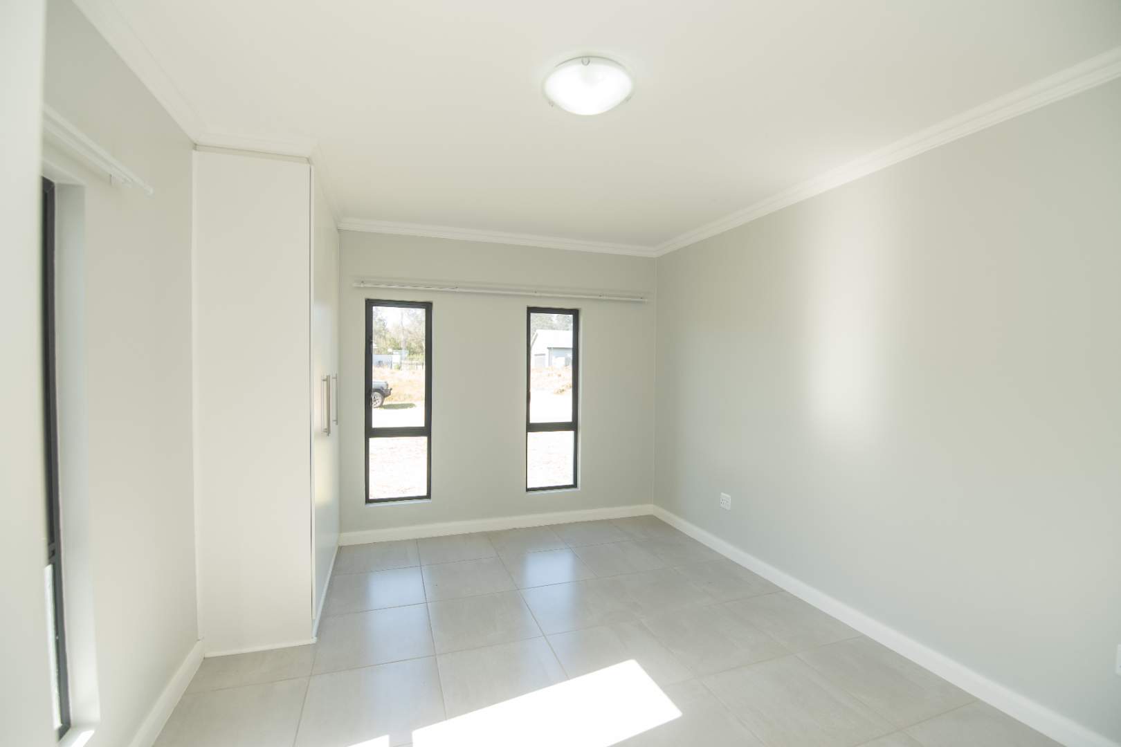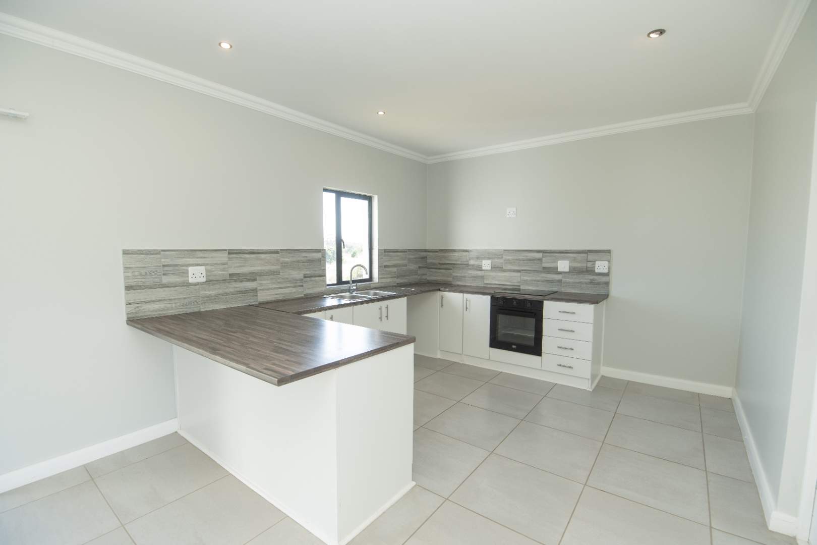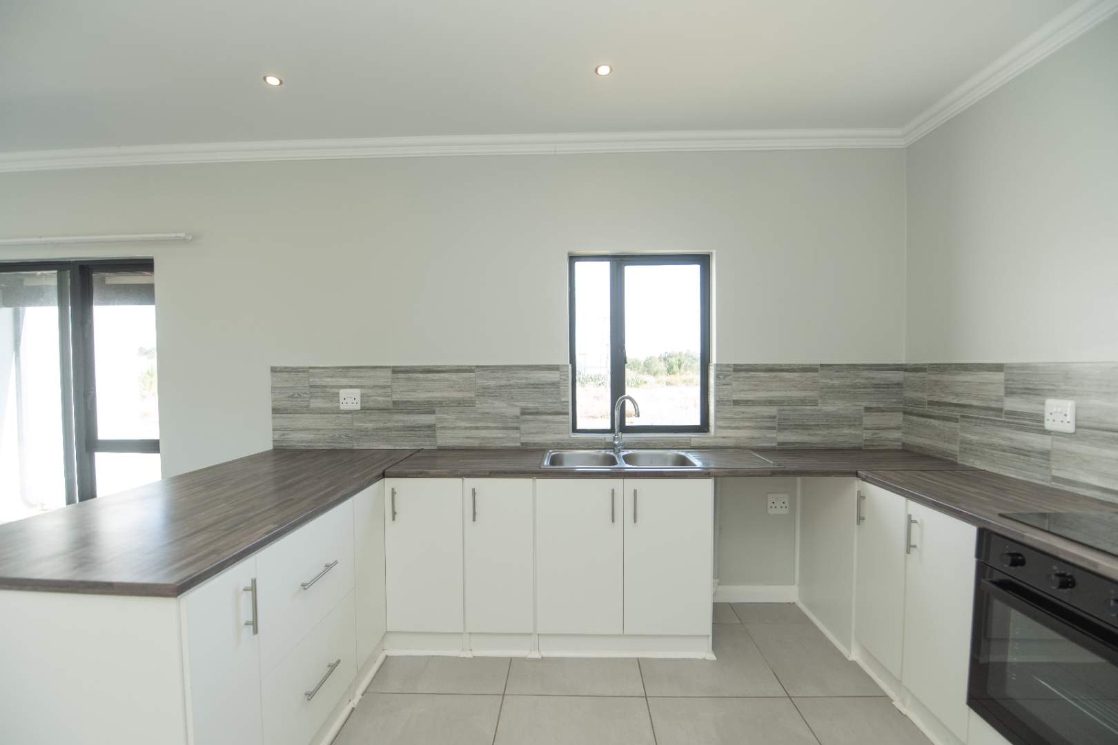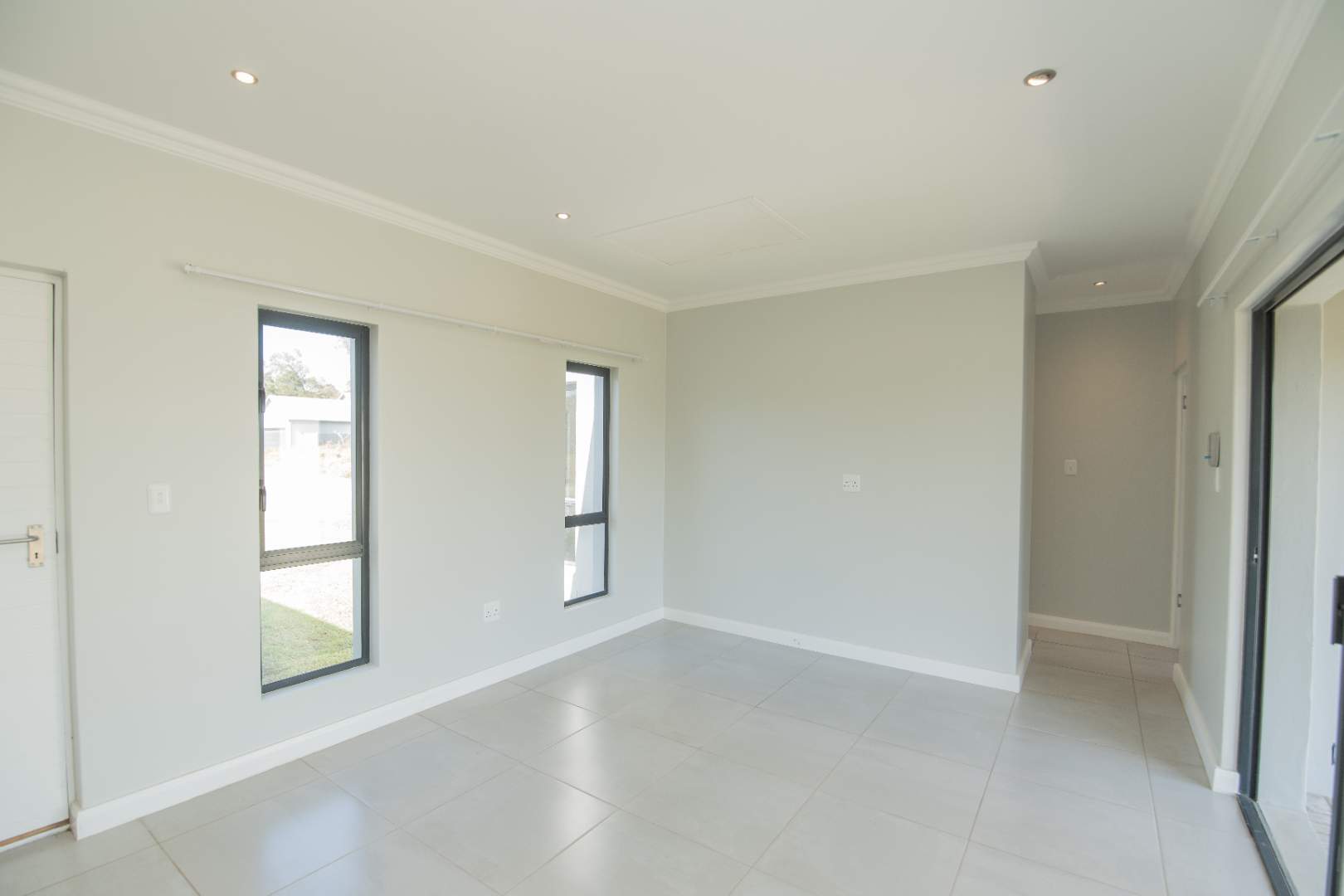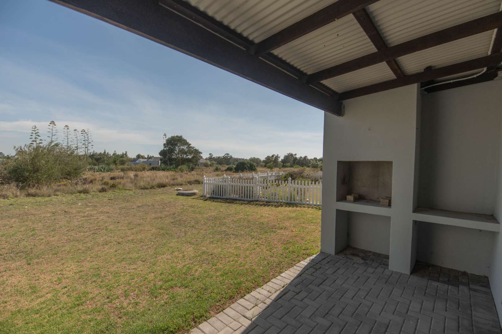 Fully tiled, open-plan lounge and kitchen, with the lounge flowing onto a private patio with built-in braai — ideal for relaxing or entertaining