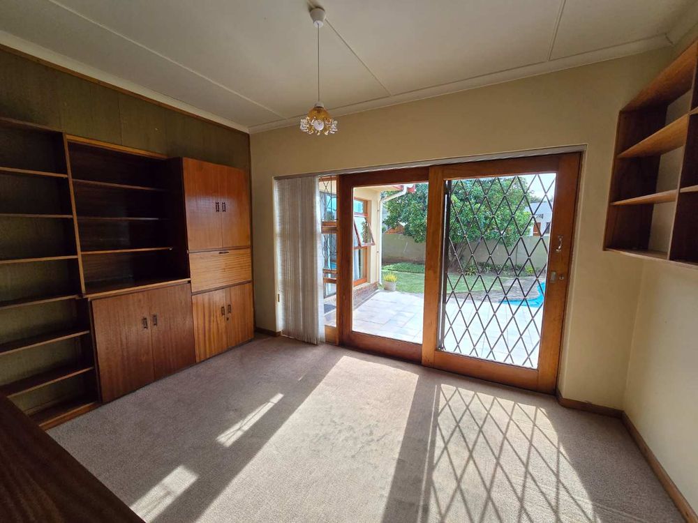 Study overlooking the pool and beautiful back garden